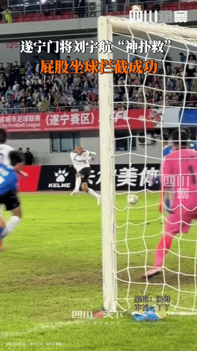 刘宇航自己就没闲着,继上轮完成头球绝平后,本轮又献上了“坐球扑救”。管你什么射门,我粉嘟嘟的遂宁门神“铁腚”不让进!在他坐下去那一刻,所有球员都愣了几秒,这样的扑救恐怕很多几十年老球迷都没有见过。用网友的话说,宇航已经可以媲美国脚级别的门将了,模板都给他定了——“刘殿坐”(刘殿座)!