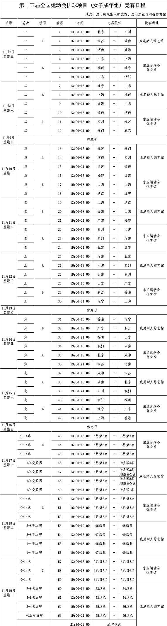 男排方面,天津食品集团男排同样面临挑战,他们将在11月8日首战卫冕冠军上海队,随后连续对阵四川、福建、河南,13日休赛一天后,14日挑战国手云集的浙江队,16日小组收官战对阵东道主香港队。